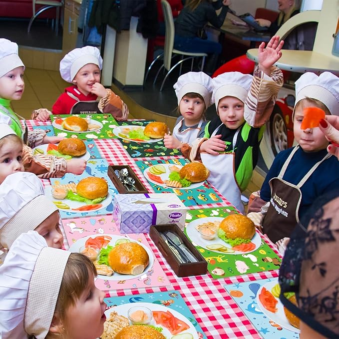 - Package includes: This set of 6 kids placemats is the great solution for making mealtime fun, engaging, and educational for your little ones. Featuring 6 distinct designs—Transport, Dinosaur, Farm Animal, Ocean, Unicorn, and Mermaid—each placemat can spark curiosity and conversation, helping your child learn about animals, vehicles, nature, and more during meals.