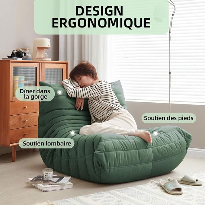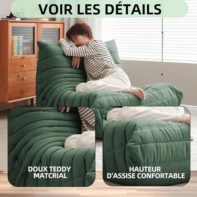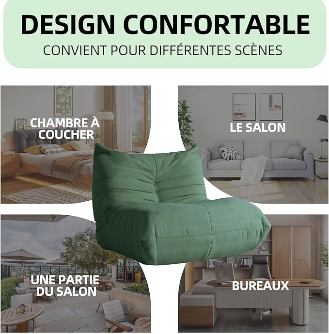 Modern Living Room Chair, Big Bean Bag Adult Floor Sofa, Togo Recliner Memory Foam Lazy Couch Suitable Balcony for Fireside Chair (Green)