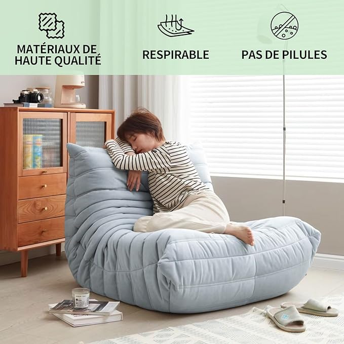 - Versatile Design: This modern bean bag chair offers a stylish and comfortable seating option for any living room, bedroom, or dorm room.