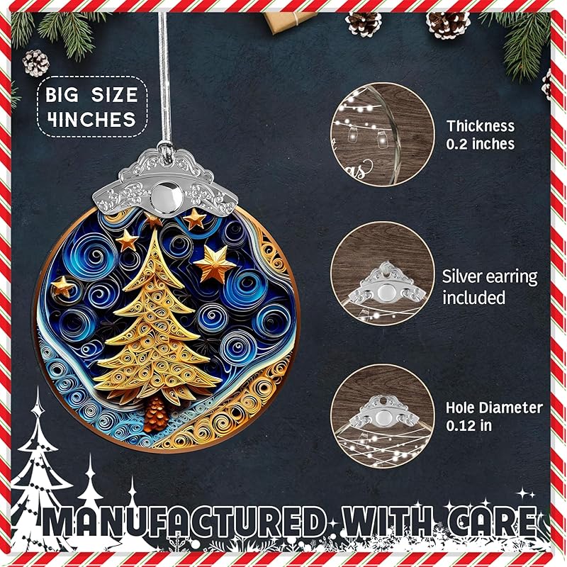 2025 Christmas Ornament, Stained Glass Effections, Christmas Tree 4 Inch Acrylic Ornament Art, White Elephant Gifts Car Interiors Decors, Christmas Decor (QuillingTree)