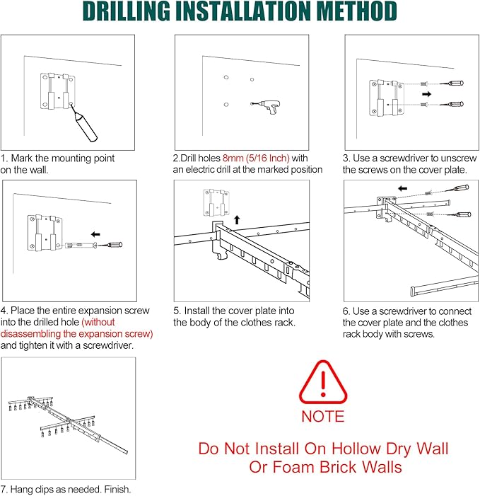 - Versatile Applications: Comes with 15 hanging holes for larger garments and 20 removable clips for smaller garments like socks, so you can hang tons of clothes at the same time. Its wall-mounted nature allows for installation anywhere.