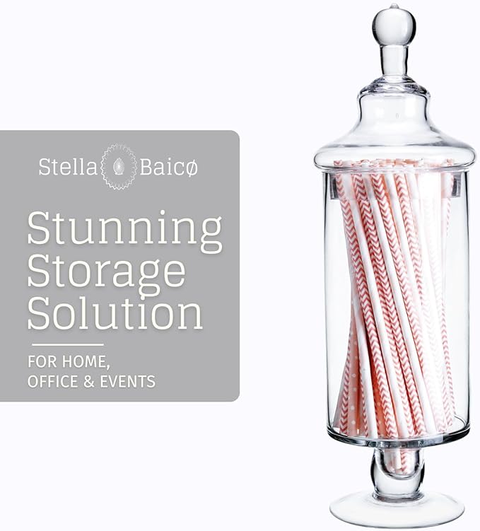- MULTIPLE USE: Not only for your Home, this candy jar for candy buffet is very sturdy, elegant, and classic, perfect for adding decoration to weddings or parties. Candy jars glass bring a touch of luxury and modern design to any event. Stella Baicø candy jar can also be a perfect gift for family and friends.