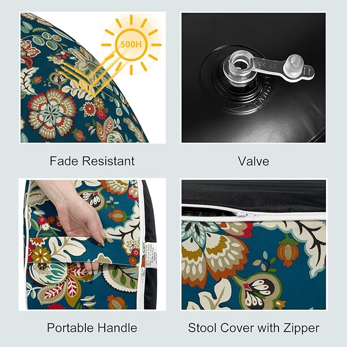 LVTXIII Inflatable Stool Ottoman Footrest with Handle, All Weather Foot Rest, Indoor or Outdoor Use for Home Patio Garden and Camping, D21 x H9, Peacock Blue