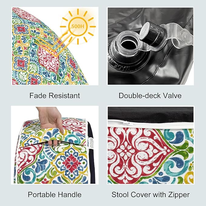 - Extensive Usage: It will be an eye-catching decoration when put it in your home, garden, and patio, colorful and attractive. After deflate it, you can take it out as a seat when go camping in a small bag. You can also store it in a carton box when not use