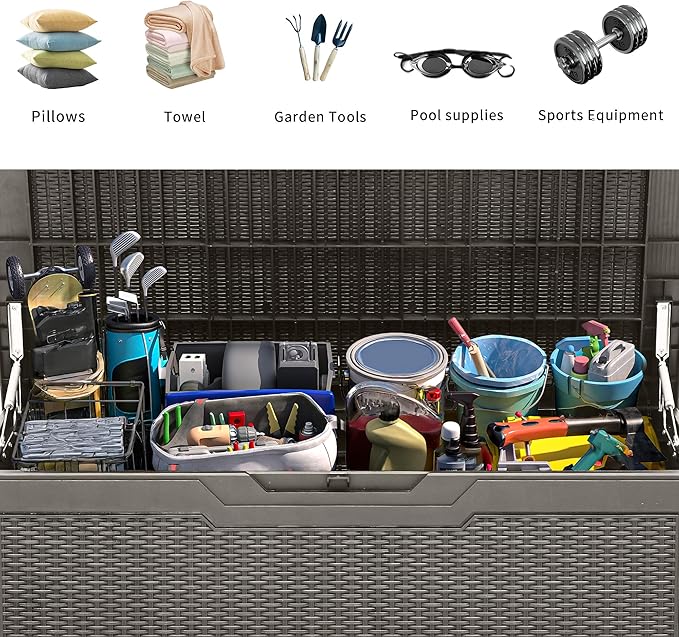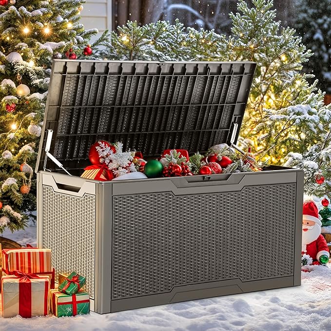 - Extra Seating: Doubling as a comfortable bench seat, this plastic deck box can support up to 485 pounds; Set it up in just 15-30 minutes, and enjoy its unique rattan-grain texture that seamlessly blends with any patio or deck decor in no time