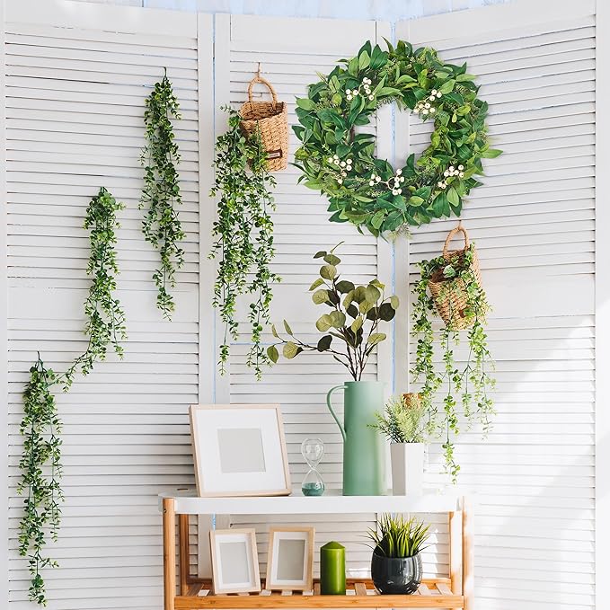 - 【Versatile All-Year-Round Use】: Suitable for all seasons and occasions, this door wreath can be hung on your front door to welcome guests, above the fireplace, or on a living room wall. It can also be used as a wedding wreath, welcome wreath, spring wreath, and more. Additionally, it makes a great gift for weddings, housewarming parties, Mother's Day, birthdays, and other holidays. - **Front Door Welcome**: Impress guests with a lush green greeting. - **Indoor & Farmhouse Charm**: Adorn walls, windows, mantels, or rustic kitchens. - **Outdoor Oasis **: Spruce up porches, patios, or garden gates.