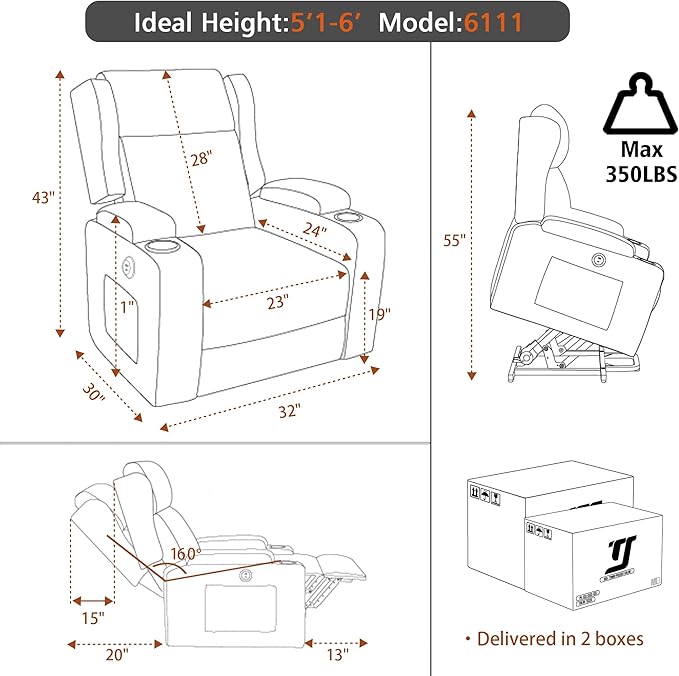 - 【Safety & Sturdy】: The power recliner chair is made of eco-friendly wood frame, formaldehyde-free and CARB P2 compliant. Upgraded thickened steel base with stronger load bearing performance, can support 350 lbs. The motor has been tested thousands of times to ensure stable and noiseless operation, which ensures the service life of the recliner.