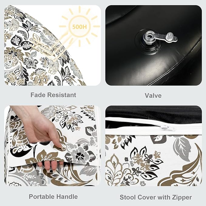 LVTXIII Inflatable Stool Ottoman Footrest with Handle, Decorative Fade-Resistant Foot Stool, Indoor or Outdoor Pouf for Home Garden and Camping Use, 21x21x9, Dailey Tan