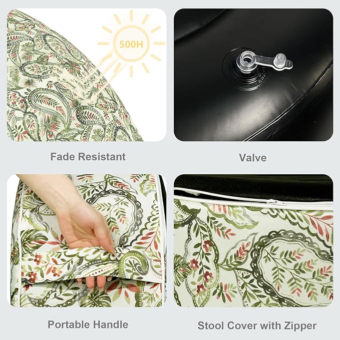 LVTXIII Inflatable Stool Ottoman Footrest with Handle, Decorative Fade-Resistant Foot Stool, Indoor or Outdoor Pouf for Home Garden and Camping Use, 21x21x9, Faylinn Shadow Paisley