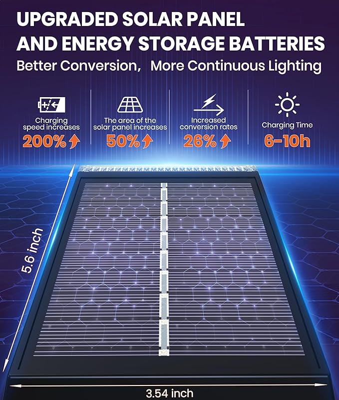 - ๐ใOptimized Solar Charging & Energy-Saving LEDsใ Equipped with 35% larger solar panels and low-power LED technology, these solar powered outdoor lights maximize energy conversion for consistent performance. Ideal for pathway illumination, yard security lighting, or long-lasting decorative accents.