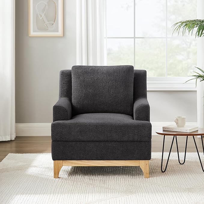 Oversized Accent Chair, Modern Boucle Armchair with Wood Legs, Modern Reading Chair with Thick Cushion, Comfy Chairs for Living Rooms, Bedrooms, Reading nooks and Apartments
