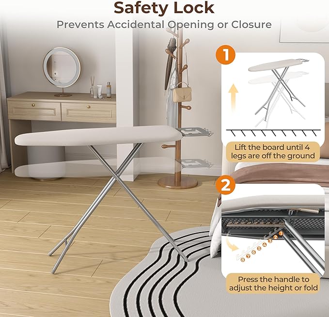 - Foldable & Portable Design: Lightweight and easy to fold, this ironing board can be moved and stored effortlessly, making it ideal for small spaces like closets or tight corners in living rooms and laundries