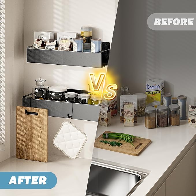 - THOUGHTFUL SAFETY DESIGN: The magnetic spice shelf features a raised 1.97-inch protective edge guard that effectively prevents items from falling off. The specially designed ventilated bottom ensures proper airflow and quick drying of containers.
