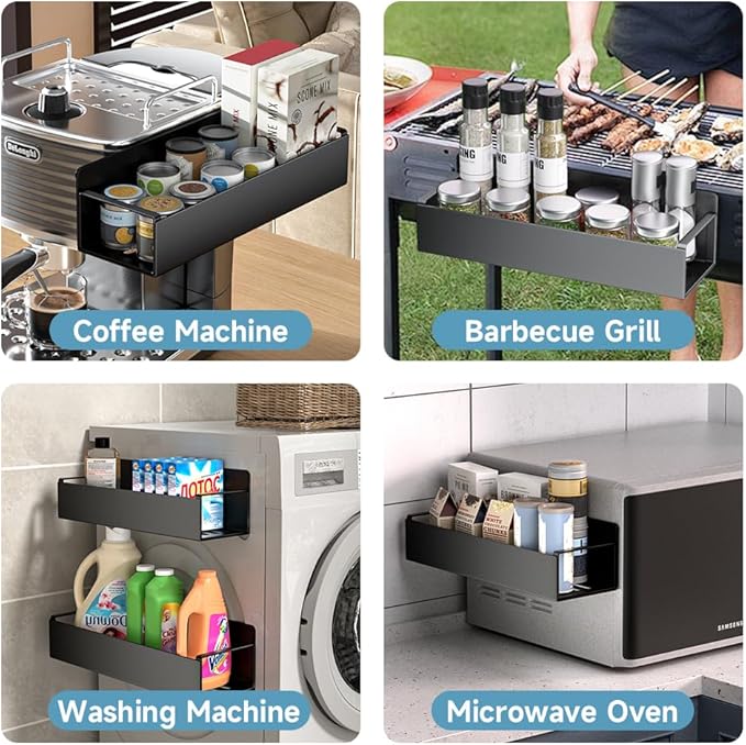 - MULTI-PURPOSE FUNCTIONALITY: An ideal storage solution for various settings - from kitchen organization to laundry room storage. Its versatile design makes it perfect for use near refrigerators, microwave ovens, coffee stations.