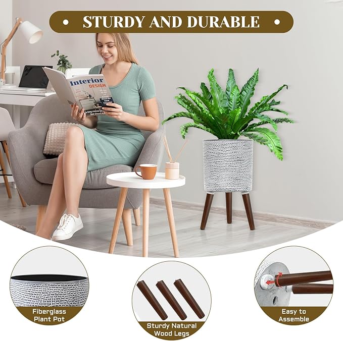 - 【Why Choose A Flower Pot With A Stand? 】This planter with modern grey mid-century minimalist look The planter blends seamlessly with modern, bohemian or vintage decor. The raised wooden legs raise the flower pot, creating an elegant and orderly atmosphere in the room.