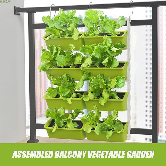 8 Pockets Vertical Planters,Wall Mounted Plastic Plant Grow Pots,Wall Pocket Planters for Indoor,Outdoor,Balcony,Garden Decoration,Light Green