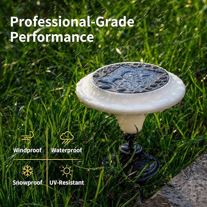 - Superior Performance & Construction - Experience reliable illumination with our advanced solar technology, delivering consistent lighting from dusk to dawn. Built with weatherproof materials (IP65 rated) and UV-resistant components, these lights withstand all outdoor conditions while maintaining their beauty. The durable base and premium shade ensure lasting performance through every season.