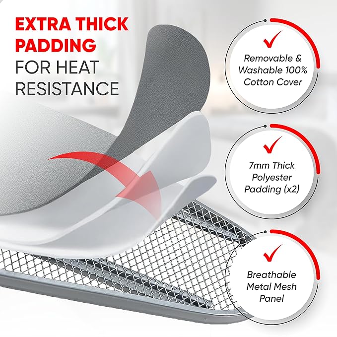 - 3-Layer Iron Board Cover: A waterproof, ultra-smooth top layer over two layers of soft, heat-absorbing padding ensures effortless glide and faster results on your full size ironing board