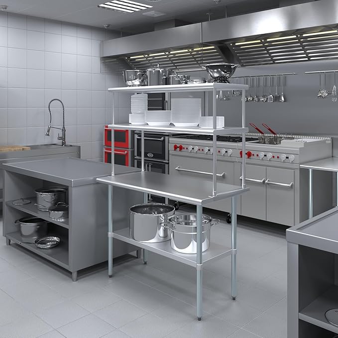 AmGood Stainless Steel Double-Tier Shelf | Work Table Overshelf | NSF Certified | Fits Over Tables | Many (48 in. Long x 18 in. Deep)