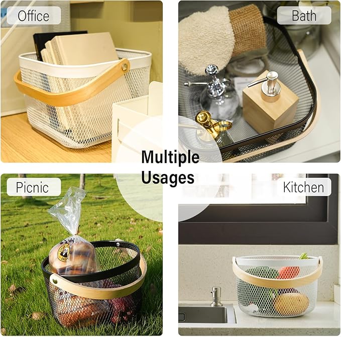 - ๐งบEasy to Carry: Our harvest basket comes with high-quality handles so you can easily carry and move it around. You can use the outdoor basket to fill it with food to take on picnics, or you can use the wire mesh baskets as a fruit basket or garden basket for collecting fruits and vegetables, or you can hang it on a shelf for easy access to things.