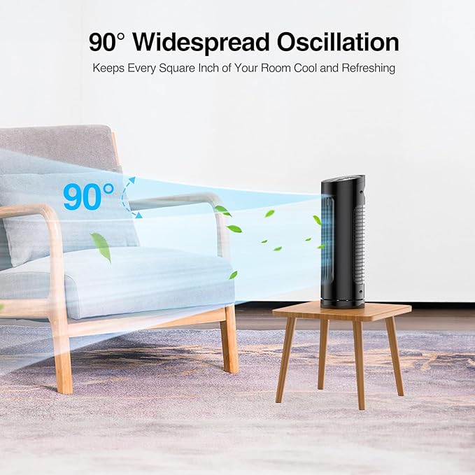 - High-Speed Cooling: VCK Tower Fan delivers powerful airflow up to 27ft/s, quickly refreshing your living space. Its supercharged motor ensures efficient cooling for bedrooms, offices, or small rooms