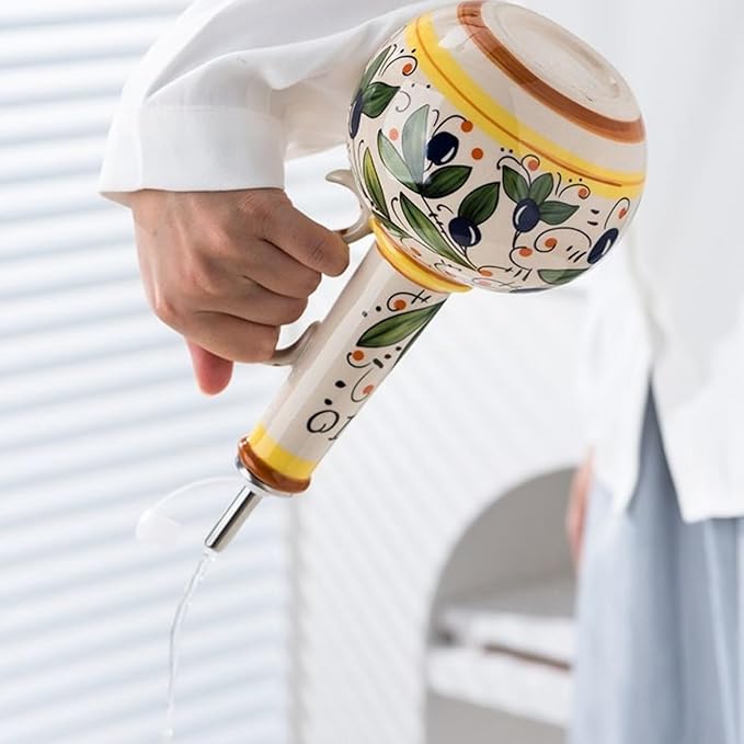 - AS A GIFT: Whether you're looking for a housewarming gift or a Valentine's Day gift to impress, our ceramic olive oil container dispenser has you covered. It makes a unique and thoughtful gift for weddings, birthdays, anniversaries, housewarming parties and more!