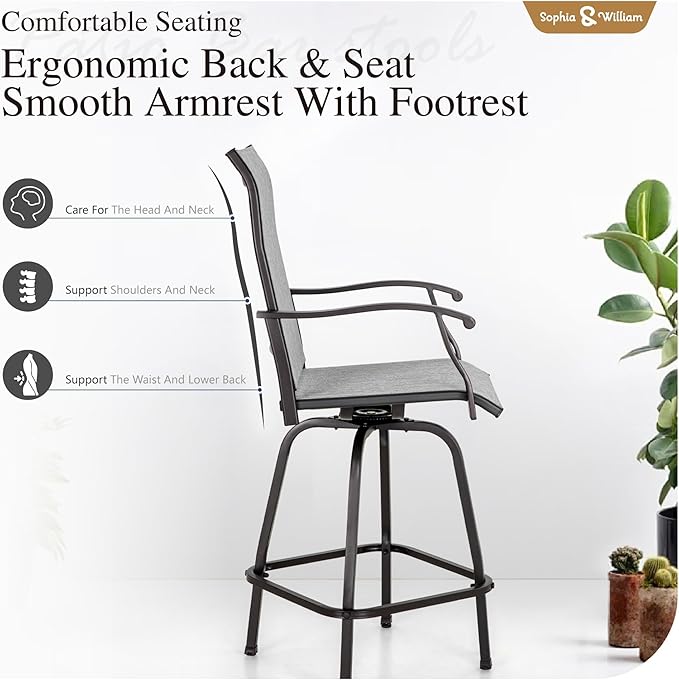 - 【Supportive & Comfortable】Enjoy the ultimate comfort with our patio bar set featuring a supportive backrest, armrests and footrests, providing a relaxing and ergonomic seating experience for extended periods. Seat height: 30", weight capacity: 300 lbs. Table size: 27.5"D x 27.5"W x 39.4"H