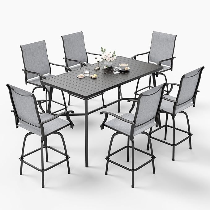Sophia & William Outdoor Bar Set, Patio Bar Table and Chairs Set Patio Dining Set, Bar Height Patio Set - 6 x Swivel Bar Chairs(Grey), 1 x Rectangular Bar Table(Black)