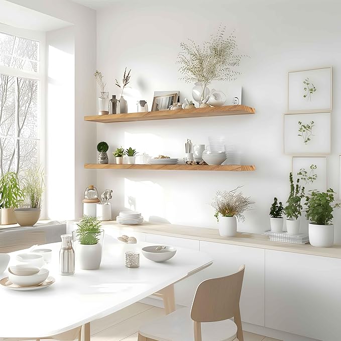 - BEAUTIFUL FLOATING SHELVES - The style and finish of these floating shelves can match almost all themes in your home. Ideal home decor to organize bathroom, office, bedroom, living room, kitchen.