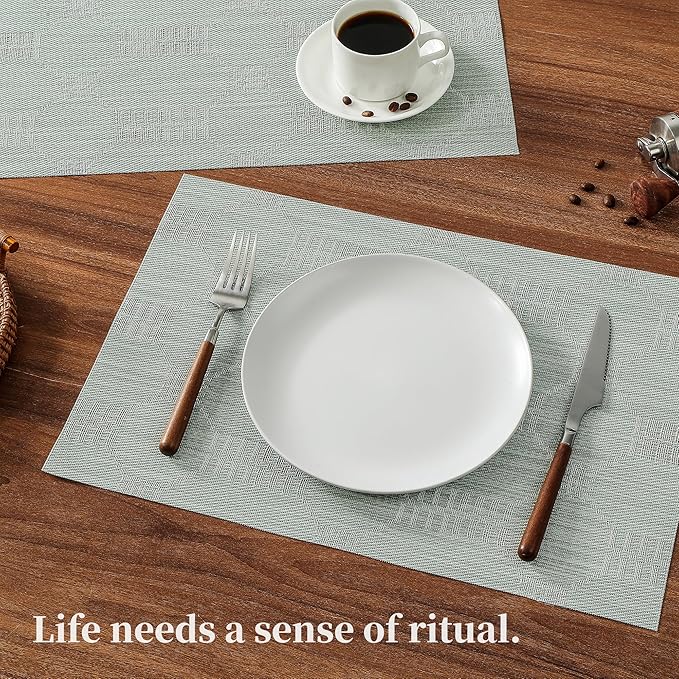 - Elegant and Practical Design: With a luxurious vinyl woven texture, precision cutting, and heat-trimmed edges, our double-sided placemats offer a sophisticated and practical solution. They provide a non-slip surface, resist fading, and are easy to clean, elevating your dining experience