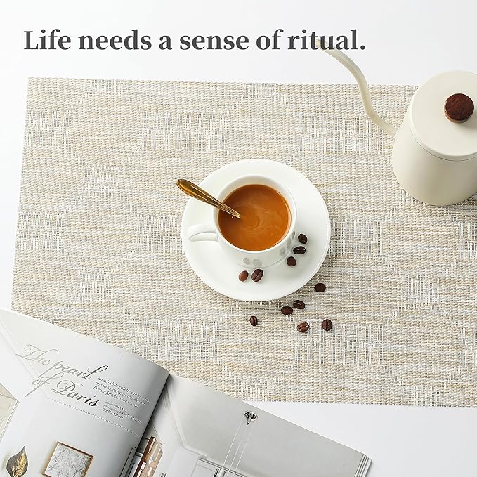 - Elegant and Practical Design: With a luxurious vinyl woven texture, precision cutting, and heat-trimmed edges, our double-sided placemats offer a sophisticated and practical solution. They provide a non-slip surface, resist fading, and are easy to clean, elevating your dining experience