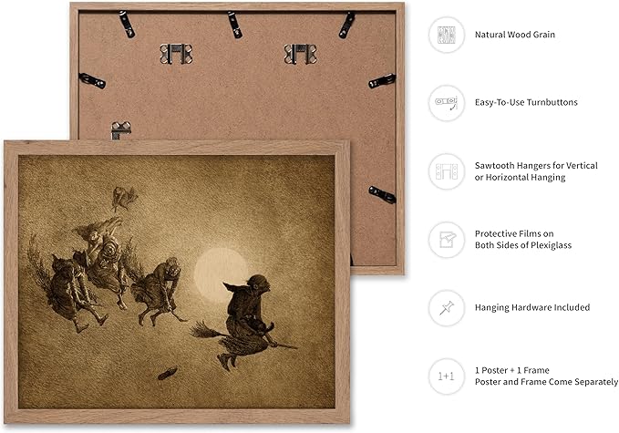 Poster Master Vintage William Holbrook Beard Poster - Retro Occult Print - Gift for Gothic, Horror Fan - The Witches Ride, Pagan, Goth, Magic - Wall Decor for Bedroom, Dorm, 11x14 Beige Framed