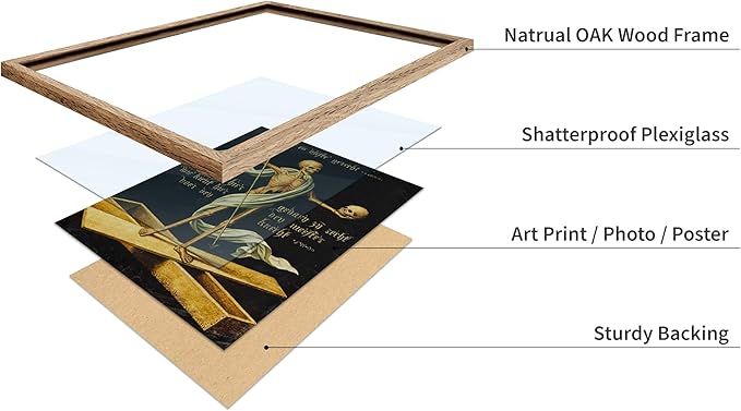 Poster Master Vintage Medieval Poster - Retro Gothic Print - Gift for Artist, Friend - Allegory of Life and Death, Skeleton, Dark, Skull - Wall Decor for Home, Living Room, 11x14 Beige Framed