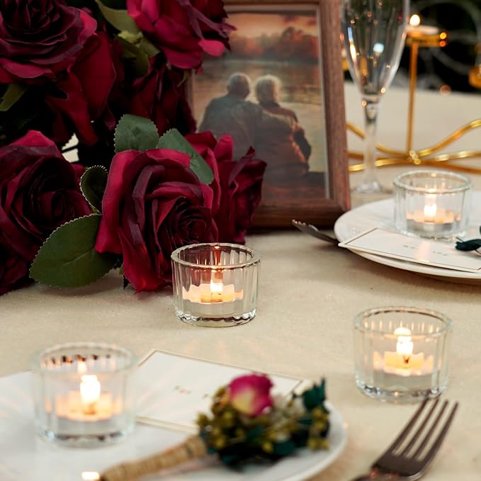 - Versatile Decoration: Our votive candle holders available in 12/24 sets, are perfect for various settings, serving as delightful decor for weddings, fireplaces, dining tables, windowsills, bathrooms, and bedrooms. They are also ideal for enhancing the festive spirit during Valentine's Day, Halloween, Thanksgiving, Christmas, birthday parties, and baby showers