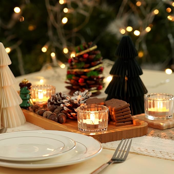 - Elegant Transparent Design: Each tea light holder measures approximately 2 inches wide by 1.3 inches high, making them perfect for tea light candles, wish candles, and flameless candles. The transparent cup softens the glow of the flame, adding a warm ambiance to your daily decor