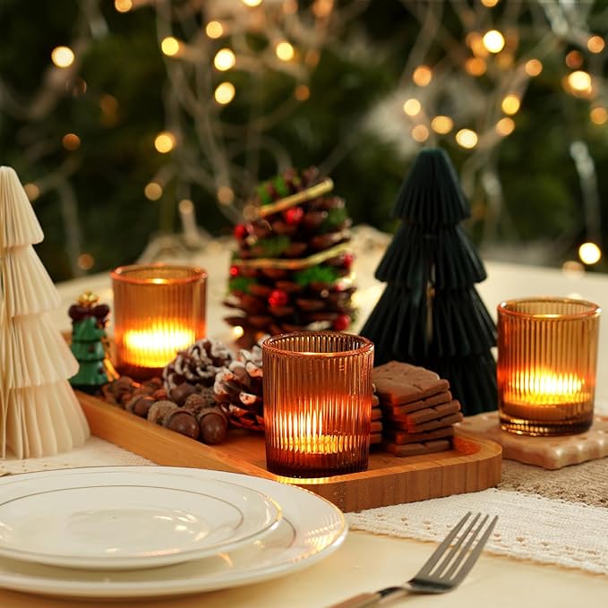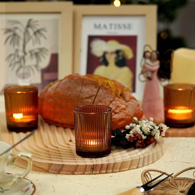 Homemory 24 Pcs Glass Votive Candle Holders, Amber Tealight Candle Holder, Vintage Candle Holders Bulk for Table Centerpieces, Christmas, Baby Shower, Birthday, Wedding, Party