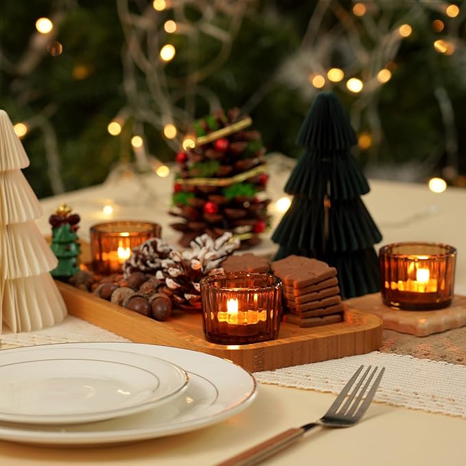- Elegant Amber Design: Each tea light holder measures approximately 2 inches wide by 1.3 inches high, making them perfect for tea light candles, wish candles, and flameless candles. The amber cup softens the glow of the flame, adding a warm ambiance to your daily decor