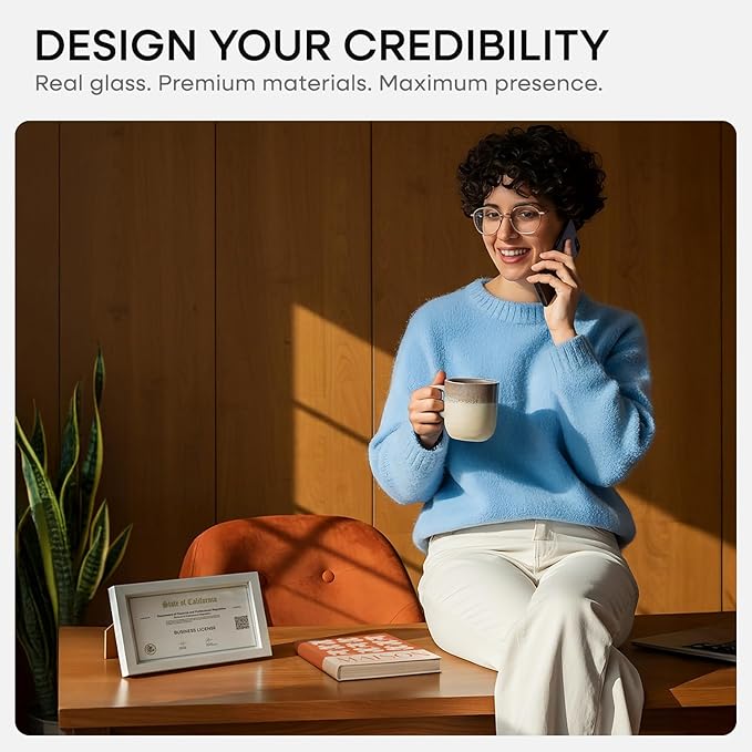 Homeforia 4x9 Business License Frame White, High End Oak 4 x 9 White Wood Certificate Frames, 9x4 Wooden Document Frames for Wall or Tabletop, 4 by 9 Picture Frames, Tempered Glass, Wall Kit, Set of 1