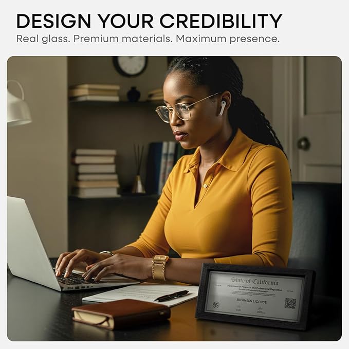 Homeforia 4x9 Business License Frame Black, High End Oak 4 x 9 Black Wood Certificate Frames, 9x4 Wooden Document Frames for Wall or Tabletop, 4 by 9 Picture Frames, Tempered Glass, Wall Kit, Set of 1