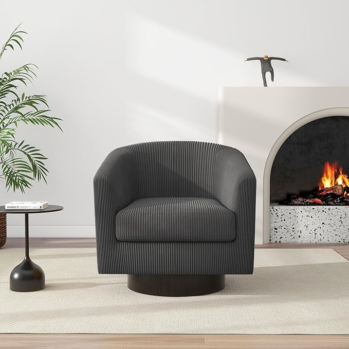 Swivel Barrel Accent Chair, Modern Round Corduroy Fabric Arm Chair for Living Room, Bedroom, Comfy Club Reading Chairs for Adults (Corduroy Grey, Set of 1)