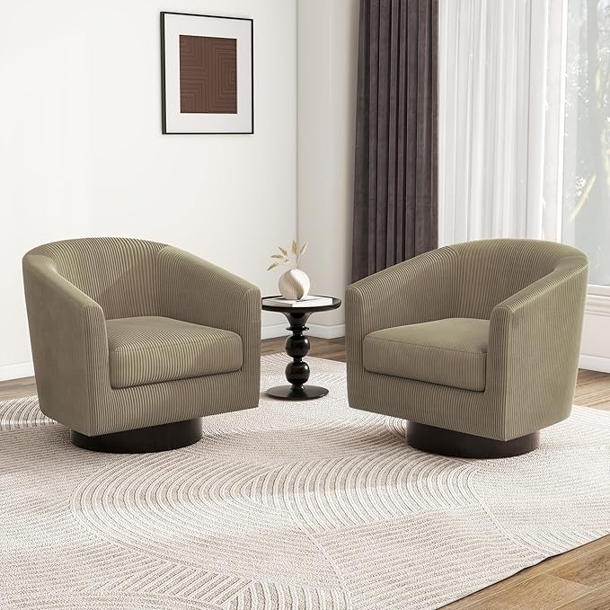 Swivel Barrel Accent Chair, Modern Round Corduroy Fabric Arm Chair for Living Room, Bedroom, Comfy Club Reading Chairs for Adults (Corduroy Camel, Set of 2)