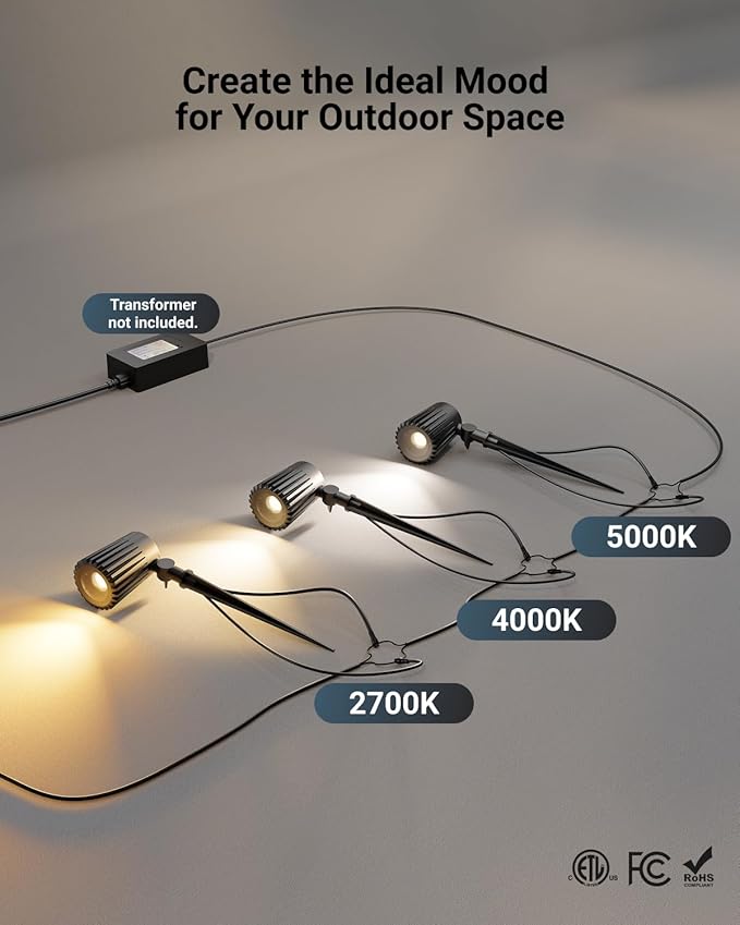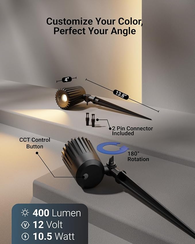 - ✅ SELECTABLE CCT – Create the perfect outdoor landscape with 3 color temperature options (2700K/4000K/5000K).
