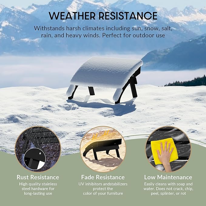 - All Weather Resistant: This Adirondack foot rest are made of HDPE plastic, its weather resistant and UV fade resistant material can withstand in various enviromental pressure and not easy to dent, crack , peel or rot as wood.