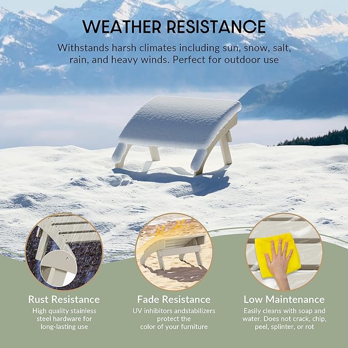 - All Weather Resistant: This Adirondack foot rest are made of HDPE plastic, its weather resistant and UV fade resistant material can withstand in various enviromental pressure and not easy to dent, crack , peel or rot as wood.