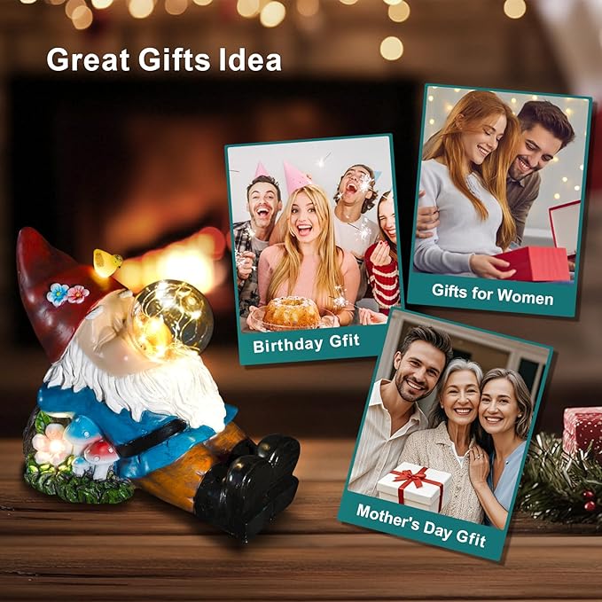 Gnome Solar Garden Statue with LED Light - Waterproof Outdoor Decoration for Terrace, Courtyard & Lawn for Moms & Women