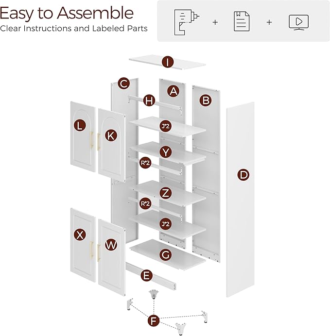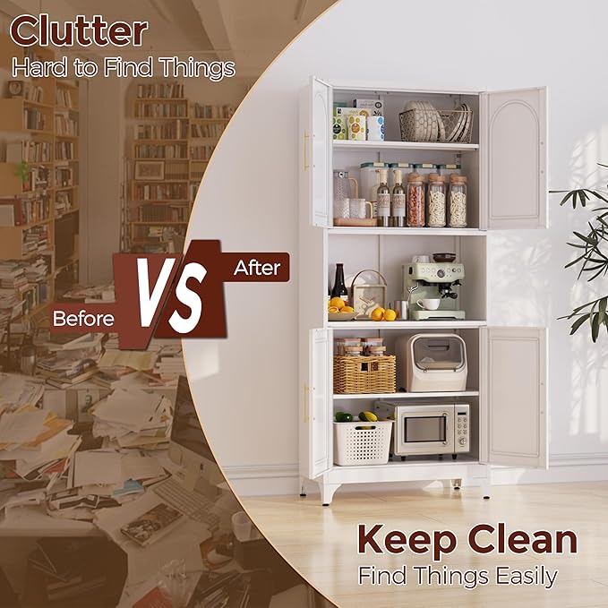 - 【Easy Assemble】Our pantry cabinets come with clear and complete parts and detailed installation instructions. One person can also assemble it quickly. Upgrade your kitchen storage with metal pantry cabinet