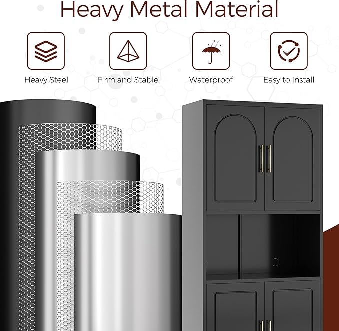 - 【Easy Assemble】Our pantry cabinets come with clear and complete parts and detailed installation instructions. One person can also assemble it quickly. Upgrade your kitchen storage with metal pantry cabinet