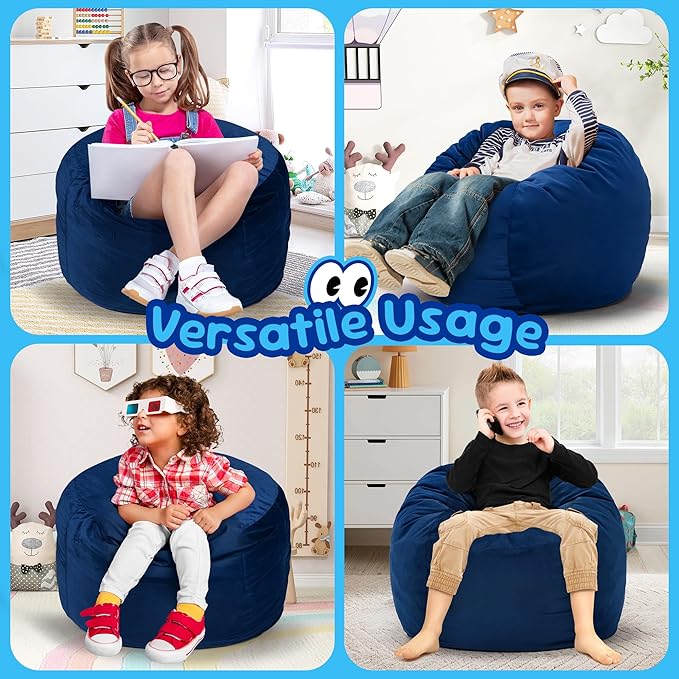 - Comfortable Bean Bag Chairs: Boys and girls alike will enjoy the comfy beanbag chairs. The bean bag cover is made of 100% skin-friendly and soft fabric, and it's filled with high-density memory foam, which is super comfortable and supportive to sit on.