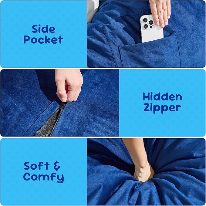 - Thoughtful Details: The bean bag chair comes with a carrying handle, making it easy for your little one to move it from room to room. Moreover, the small bean bag chair features a side pocket where your litte one can store their own belongings.