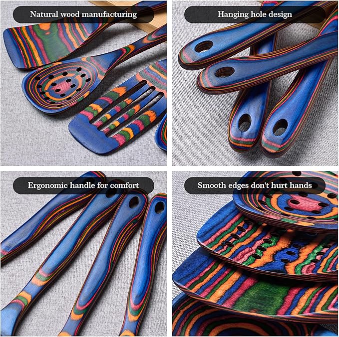 - 7 Tools for Every Cooking Task – soup spoon,spaghetti & pasta spoon,skimmer/filter spoon,seasoning spoon,perforated spatula,solid turner and sloted spatula – perfect for frying, mixing, serving, baking, and more.